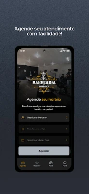 Através do App Barbearia do Johnny os clientes podem realizar seus agendamentos de uma forma muito mais prática. Na tela inicial, é possível selecionar os serviços e horário desejado para seu próximo atendimento. Já na tela de histórico, você poderá confirmar ou cancelar seus agendamentos. É possível também na tela do perfil o cliente editar suas informações, como e-mail, foto de perfil e telefone.