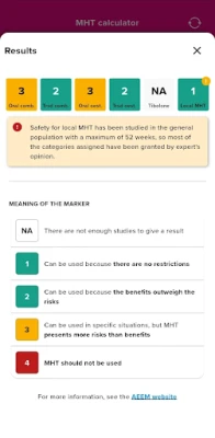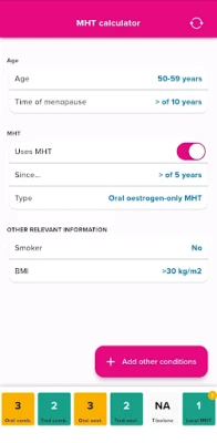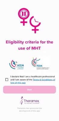 MHT Eligibility Criteria is an App designed with the aim of helping professionals to choose the most appropriate hormone therapy for each woman. Based on the answers to a questionnaire, the program identifies the treatment of climacteric symptoms that best suits the conditions of the user. This information is provided for educational and informational purposes only, serves as a decision support for the practitioner and should not be used as a substitute for individualized physician assessment, nor does it replace the physician-patient assessment. The App does not collect user data and is endorsed by the AEEM.