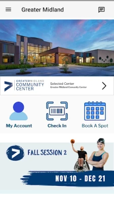 Stay connected to Greater Midland anytime, anywhere! Whether you're looking to check in at the Welcome Desk, view membership options, book your next workout, or register for programs, the Greater Midland app puts it all at your fingertips. Enjoy seamless access to all the necessary tools to stay active and involved in the community.