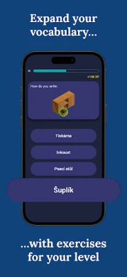 - Interactive exercises with images that make it easier to memorize new words! Learn in a fun and easy way — with a gamified interface that makes studying feel like playing a game.