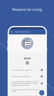 • Reasons For Living - A place to keep statements reminding you why you should stay alive.
