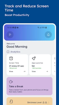 ✔️ Strict Mode: Lock settings to ensure consistency and reinforce self-control.