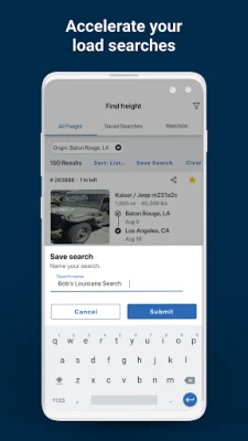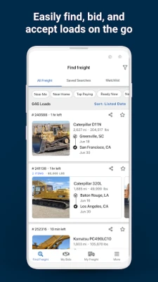 • Accelerate your load searches by saving common criteria for quick use and watch loads before you bid.